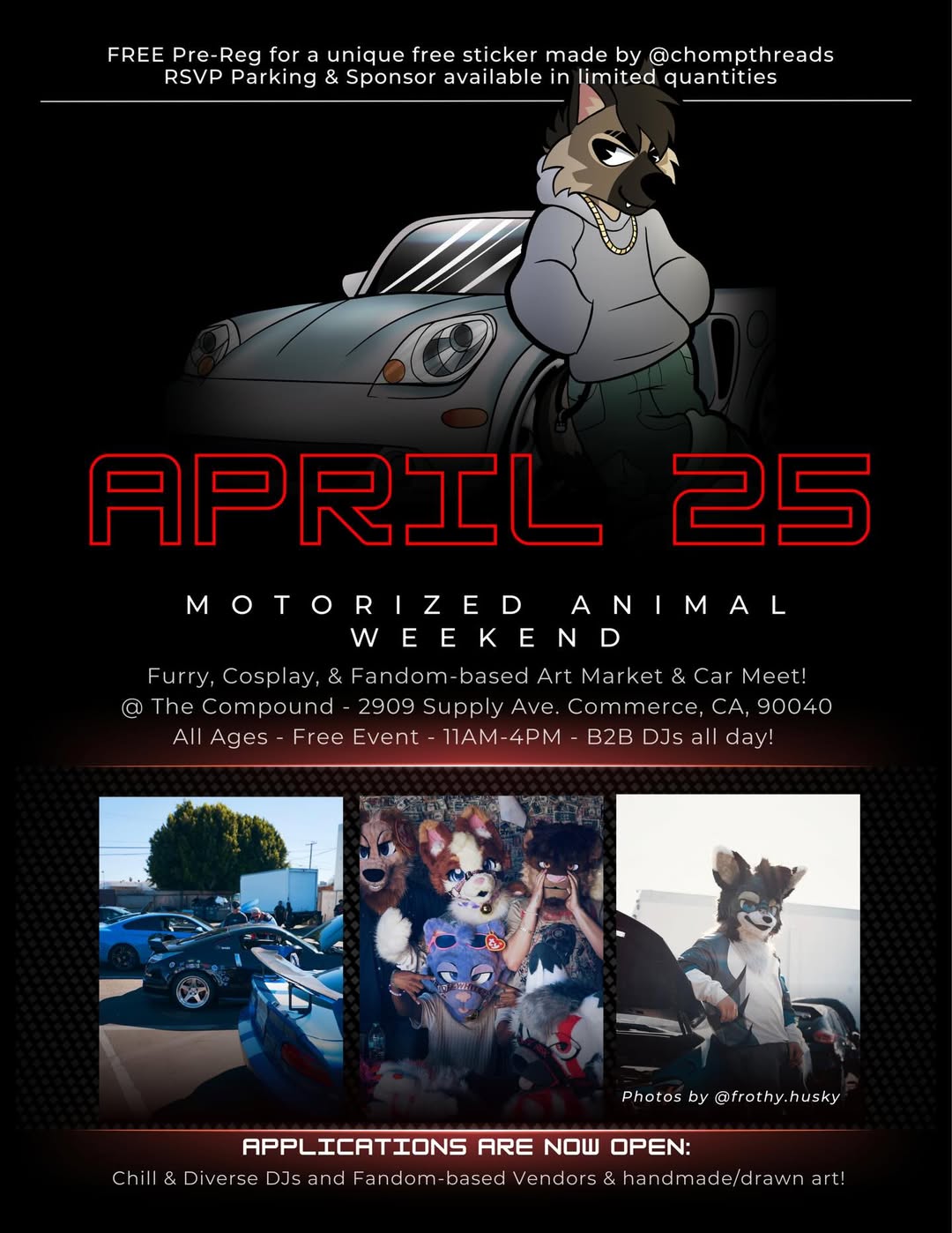 Join MAW: Motorized Animal Weekend at our latest Cars, Art & Hot Dogs meet! Saturday, April 25th | 11AM-4PM The Compound - Commerce, California Indoor Art Market | Free Sticker of the month & Sponsor merch designed by @chompthreads 🎧Your fave local DJs playing some chill vibes all day! Furry & Itasha Car Show in […]